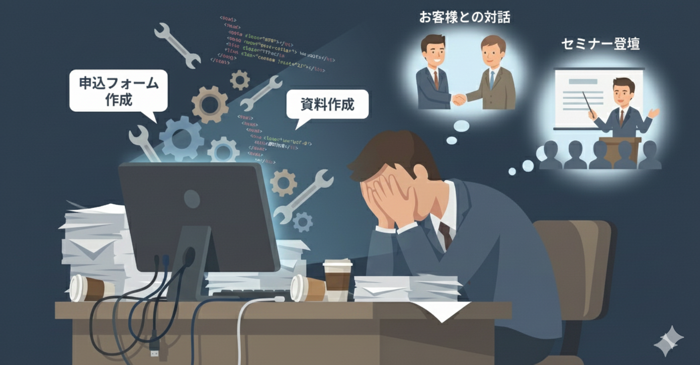 「本当は営業やセミナー、何よりもお客様との対話に力をかけたいのに…